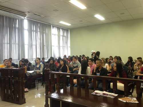 A sala do Tribunal de Júri da Universidade Metodista de São Paulo ficou lotada de participantes do Dia da Universidade Aberta que acompanharam a atividade preparada pelo curso de Direito, uma simulação do julgamento do caso Suzane Von Richthofen.