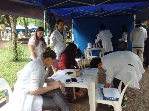 Além das exposições orais, houve também duas atividades interativas: a avaliação da pisada e a eletroestimulação, nas quais os visitantes tiveram a oportunidade de experimentar dois tratamentos típicos da fisioterapia.