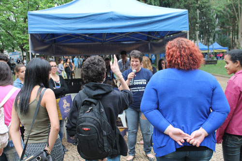 A possibilidade de concluir um curso superior em menos tempo, em média em dois anos, é o que mais atrai o jovem Fabrício Dal´Mas para as graduações de Tecnólogo, pois ele já trabalha em agência de comunicação e busca uma especialização em Marketing. Já o amigo e colega de trabalho Sandro Querino quer seguir carreira administrativa e ouviu atento as explicações sobre o curso de Administração Financeira que aconteceram no espaço da Escola de Gestão e Direito durante o DUA (Dia da Universidade Aberta) Metodista.
