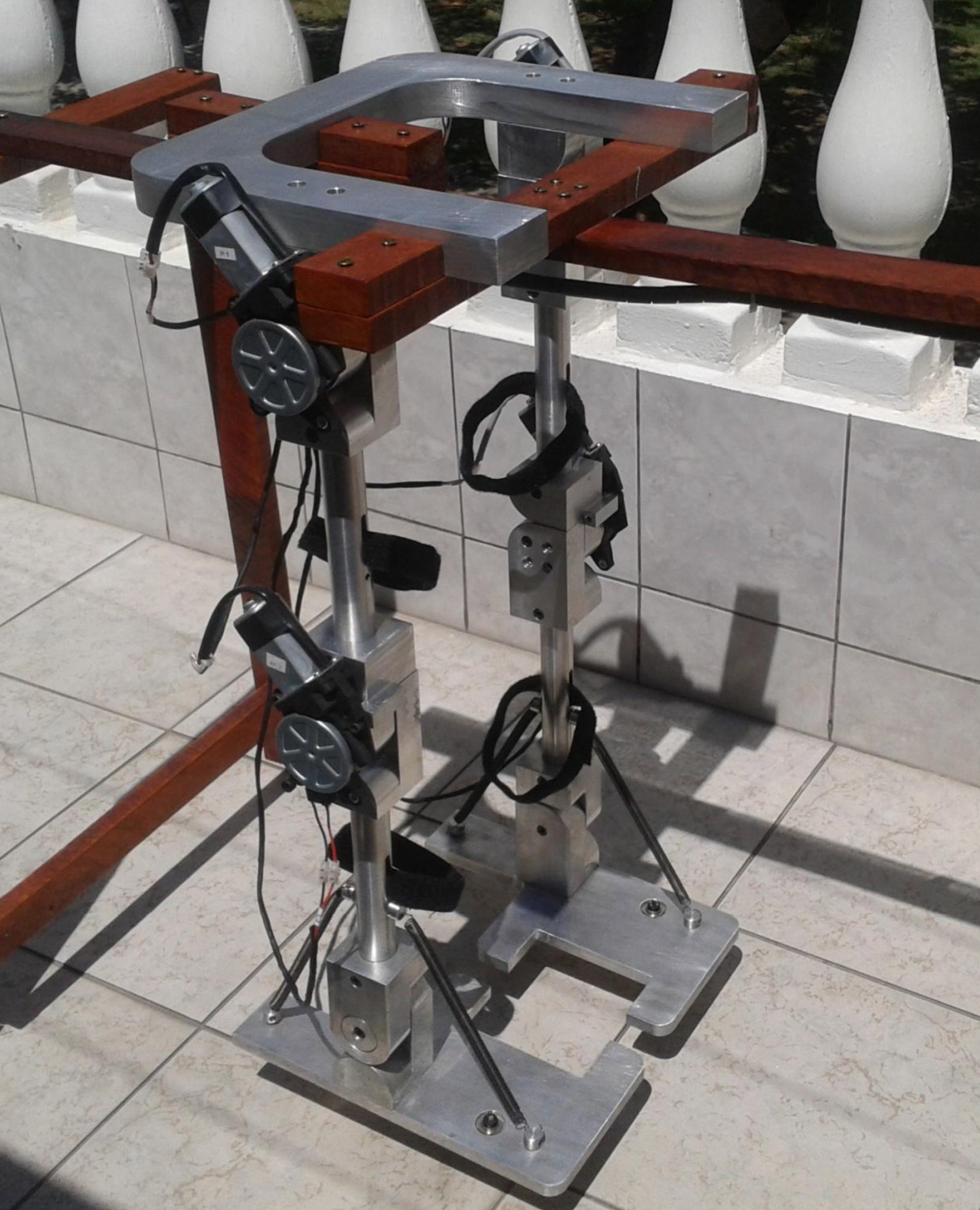 Rocha, Luiz Alberto Alves e Ronaldo Neves, de Engenharia da Computação, para desenvolver o Trabalho de Conclusão de Curso sobre o exoesqueleto. Os alunos criaram metodologia própria, que incluiu estudos sobre biomecânica (teoria dos movimentos da marcha humana) e soluções de hardware e software para a automatização do protótipo. Foram desenvolvidas 23 peças em nove meses, mas as pesquisas consumiram pelo menos 12 meses devido a alterações que ocorreram durante as atividades, conta Luiz Alberto.