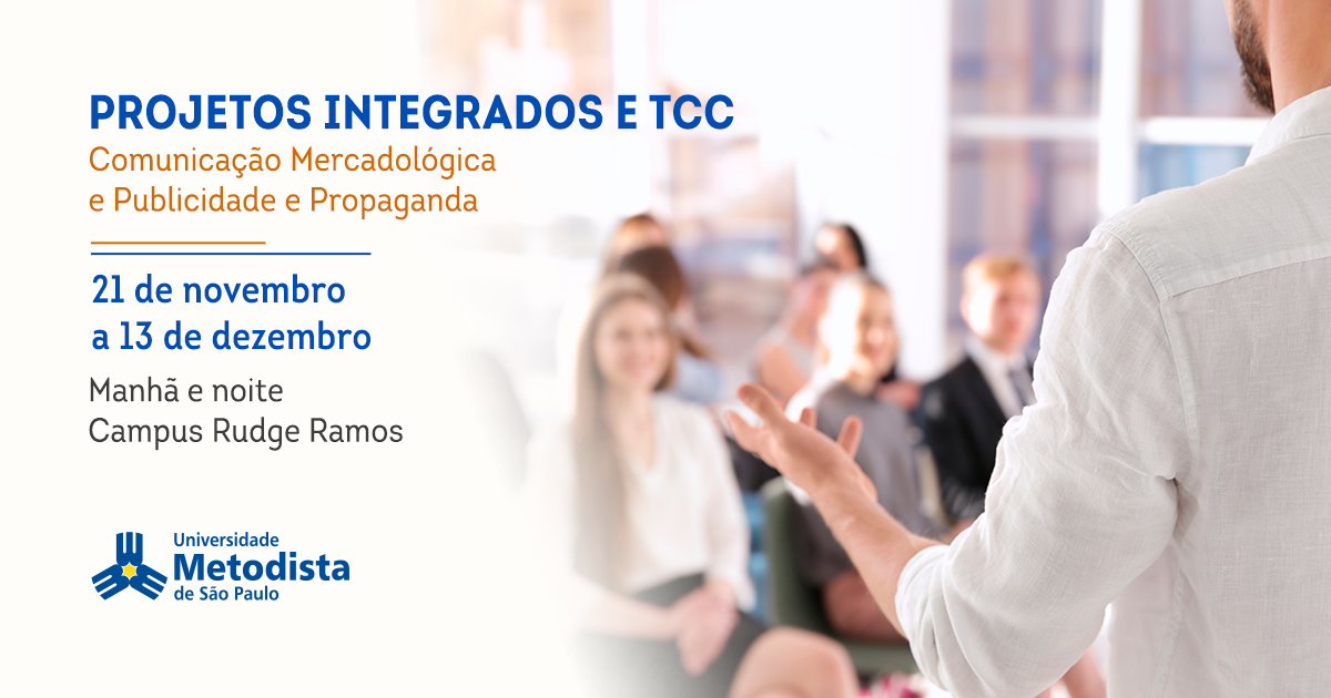 Os alunos dos cursos de Design de Interiores, Jornalismo, Relações Públicas, Rádio, TV e Internet, Comunicação Mercadológica e Publicidade e Propaganda da Universidade Metodista de São Paulo apresentam, nos meses de novembro e dezembro, seus projetos integrados e Trabalhos de Conclusão de Curso (TCC) desenvolvidos ao longo do segundo semestre de 2017.
