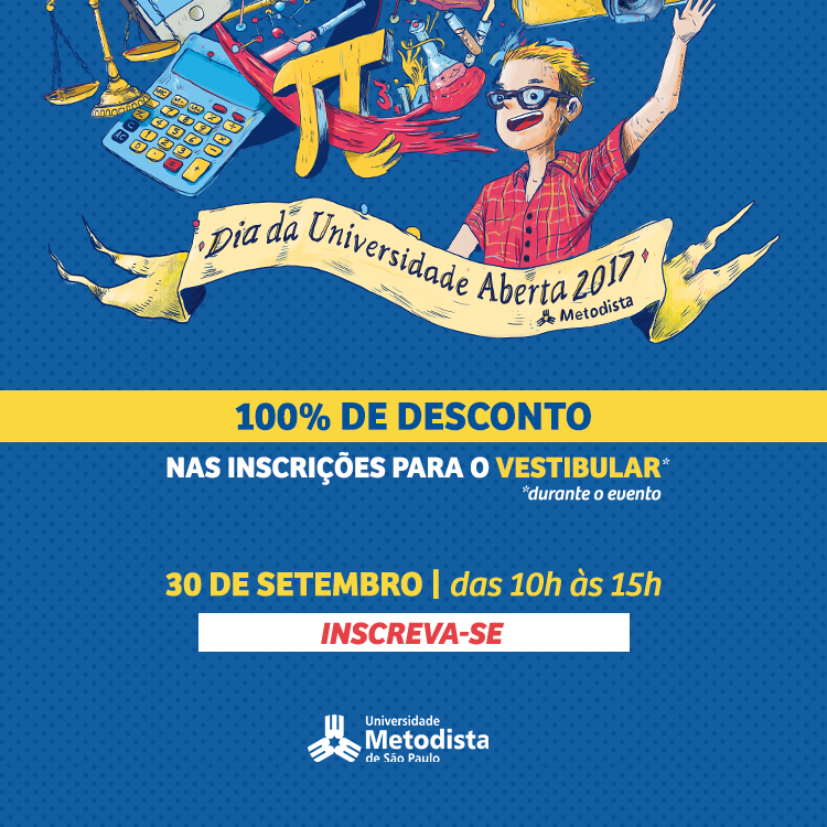 A Universidade Metodista de São Paulo promove no dia 30 de setembro de 2017, das 10h às 15h, o Dia da Universidade Aberta – DUA. Neste ano, o evento reunirá diversas atrações especiais e as inscrições para o Vestibular 2018 serão gratuitas.