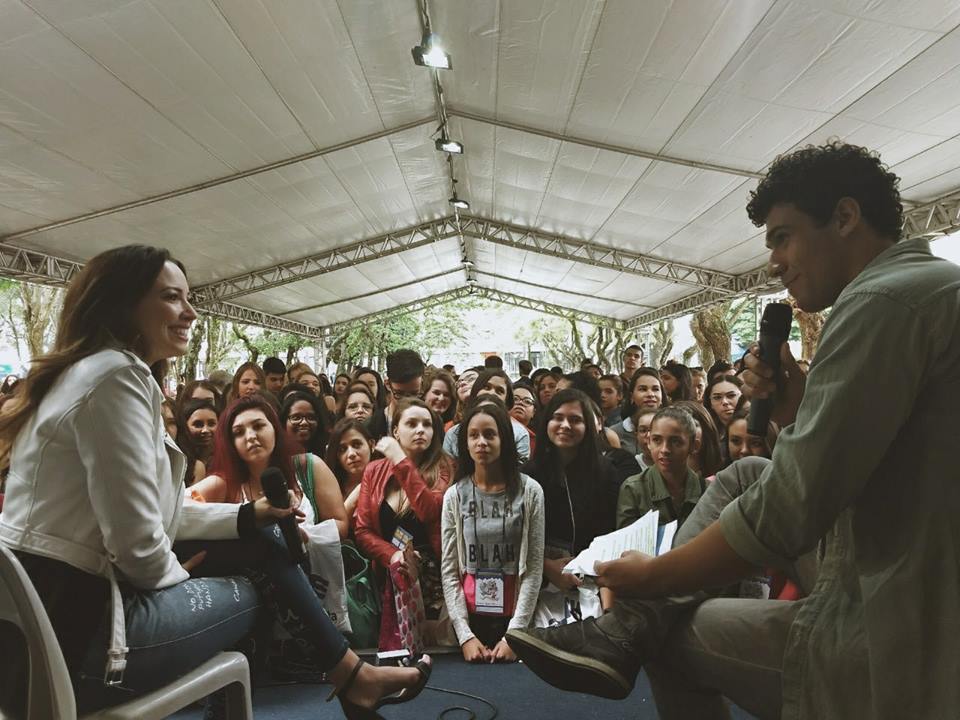 Quem passou pela Metodista pôde ver de perto a youtuber Taciele Alcolea, que contou um pouco da sua época de vestibulanda (ela se formou em Administração, mas disse que tinha vontade de fazer outros cursos) e deu dicas para quem está vivendo essa fase: muito preparo e calma na hora da prova.