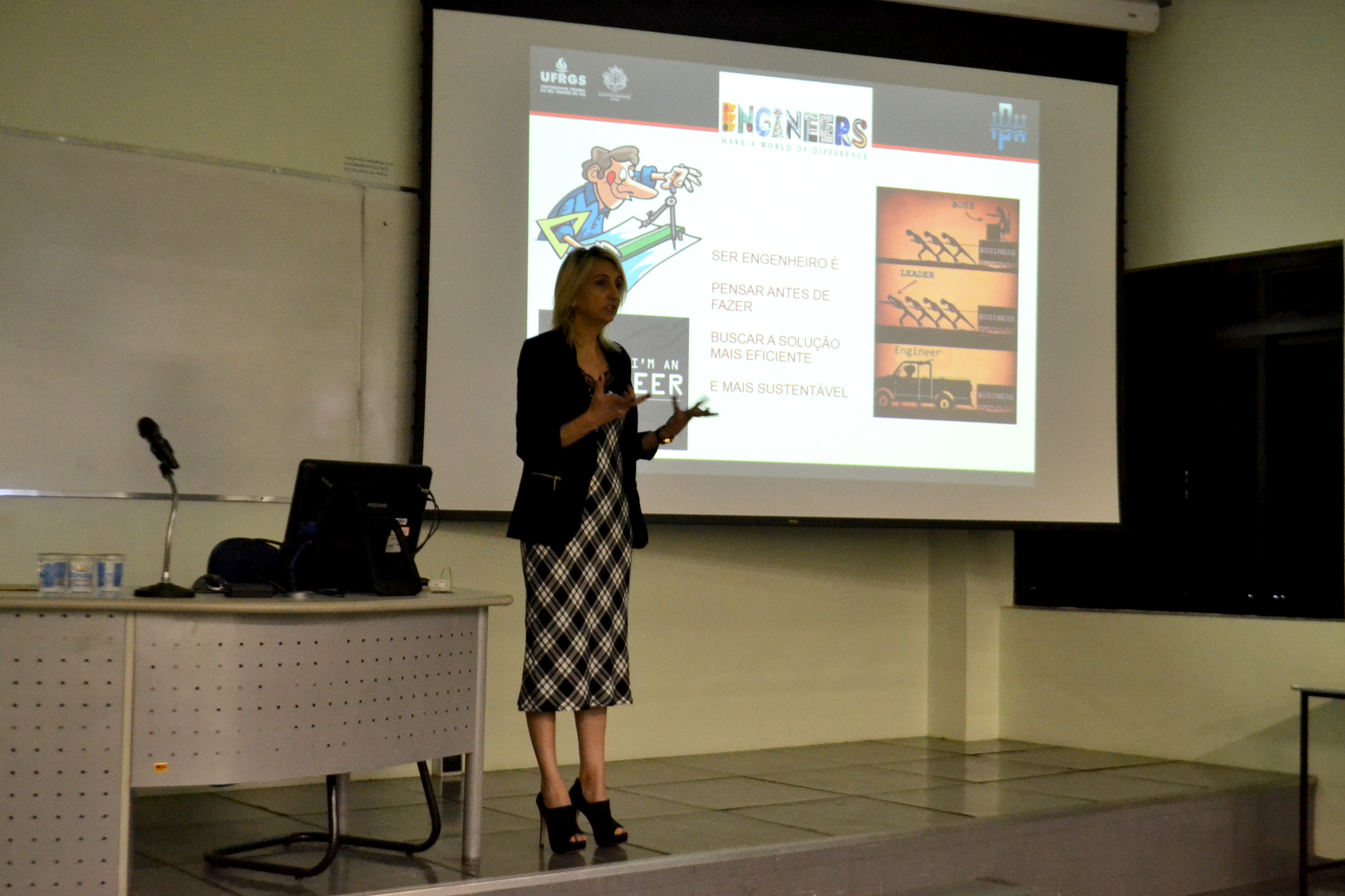A palestrante provocou reflexões sobre a relevância da profissão do engenheiro nos processos de inovação, assim como suas responsabilidades no mercado e na sociedade. “Ser engenheiro é pensar antes de fazer e buscar uma solução mais eficiente e sustentável”, diz. Ela ressalta que, atualmente, os profissionais da área precisam planejar e criar tecnologias e soluções para problemas de mobilidade, sustentabilidade, segurança, saneamento básico e educação: “Somos um país rico em recursos naturais, temos tudo para ser uma potência, mas precisamos de engenheiros que alavanquem esse processo”.