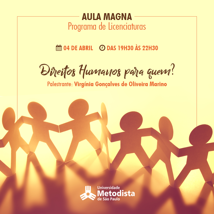 O evento será ministrado por Virgínia Gonçalves de Oliveira Marino e terá como tema "Direitos Humanos para quem?".