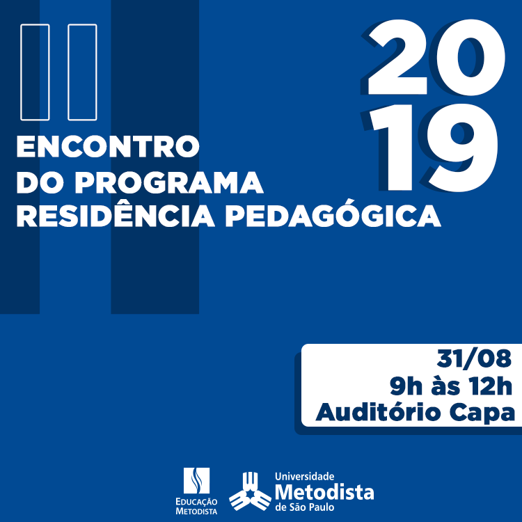 A Universidade Metodista de São Paulo receberá em 31 de agosto próximo os bolsistas participantes do Programa de Residência Pedagógica para apresentação de trabalhos realizados no primeiro semestre de 2019, no II Encontro do Programa Residência Pedagógica.
