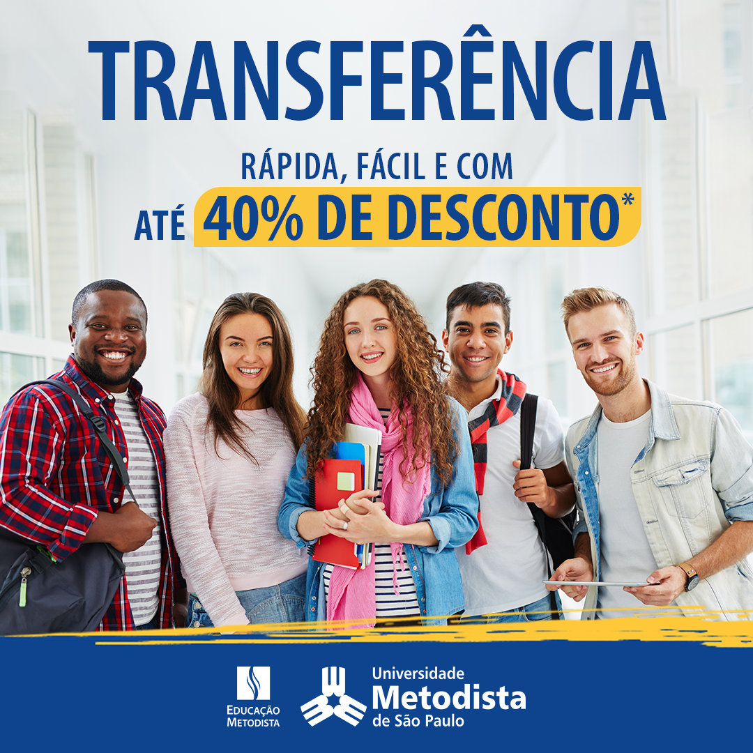 Quer ingressar no ensino superior ainda neste semestre? A Universidade Metodista de São Paulo tem uma excelente oportunidade para você realizar o seu sonho: alunos regularmente matriculados em outras instituições que desejam pedir transferência para a Metodista contarão com 30% de desconto, aplicado a partir da primeira mensalidade (matrícula) e válido por dois semestres.