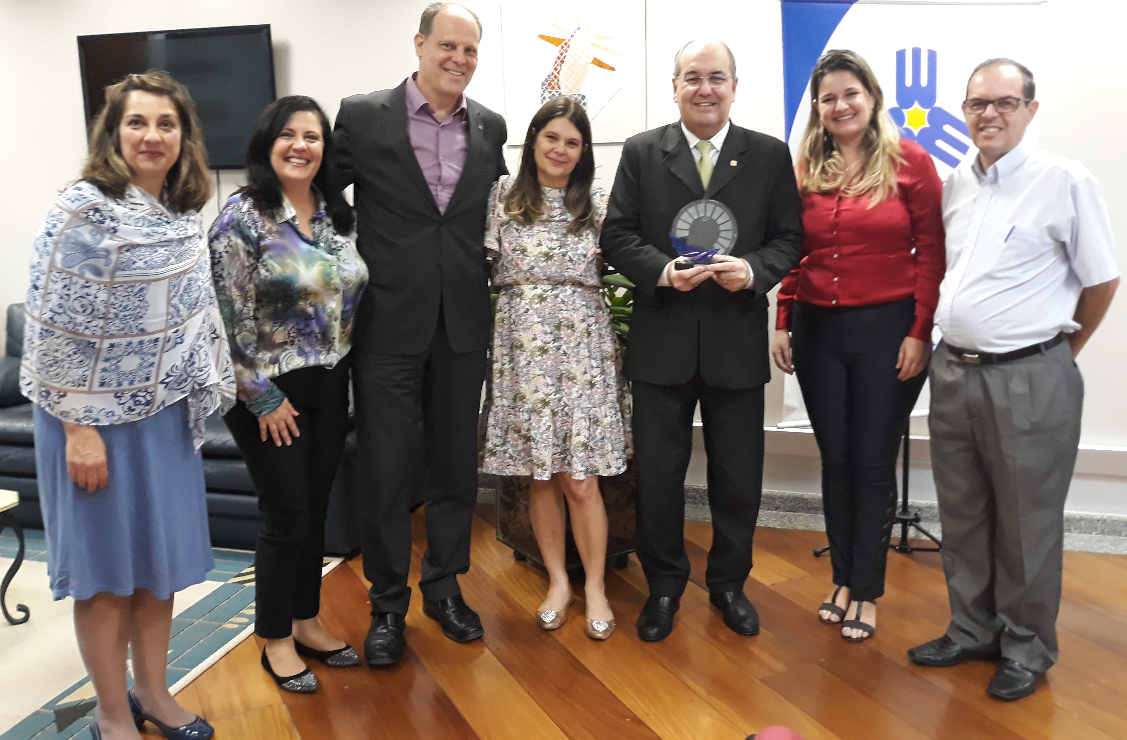 “Como universidade, cumprimos nosso papel de inserção pela educação e o Brasil é um país ainda em construção”, salientou o reitor, ao receber o troféu do Prêmio Objetivos de Desenvolvimento Sustentável-ONU da Rede Brasil na tarde da quinta-feira 23 de maio passado. Participaram também do ato simbólico o diretor do campus Vergueiro e coordenador dos cursos de Engenharias Civil, da Computação e Eletrônica, professor Carlos Santi, além das coordenadoras do curso de Engenharia Ambiental e Sanitária, Márcia Sartori, e de Gestão de RH e Marketing EAD, Valéria Calipo, respectivamente.