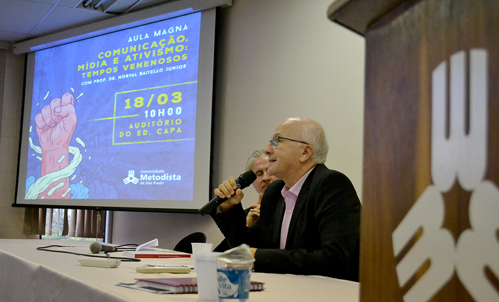 A nova era da comunicação e as novas formas de ativismo foram debatidas na Universidade Metodista de São Paulo na última segunda-feira (18 de fevereiro). Em aula magna organizada pelo Programa de Pós-Graduação em Comunicação Social (PósCom), a instituição recebeu Norval Baitello Junior, docente da Pós-Graduação em Comunicação e Semiótica da Pontifícia Universidade Católica de São Paulo (PUC-SP), que discutiu o tema "Comunicação, Mídia e Ativismo: Tempos Venenosos".