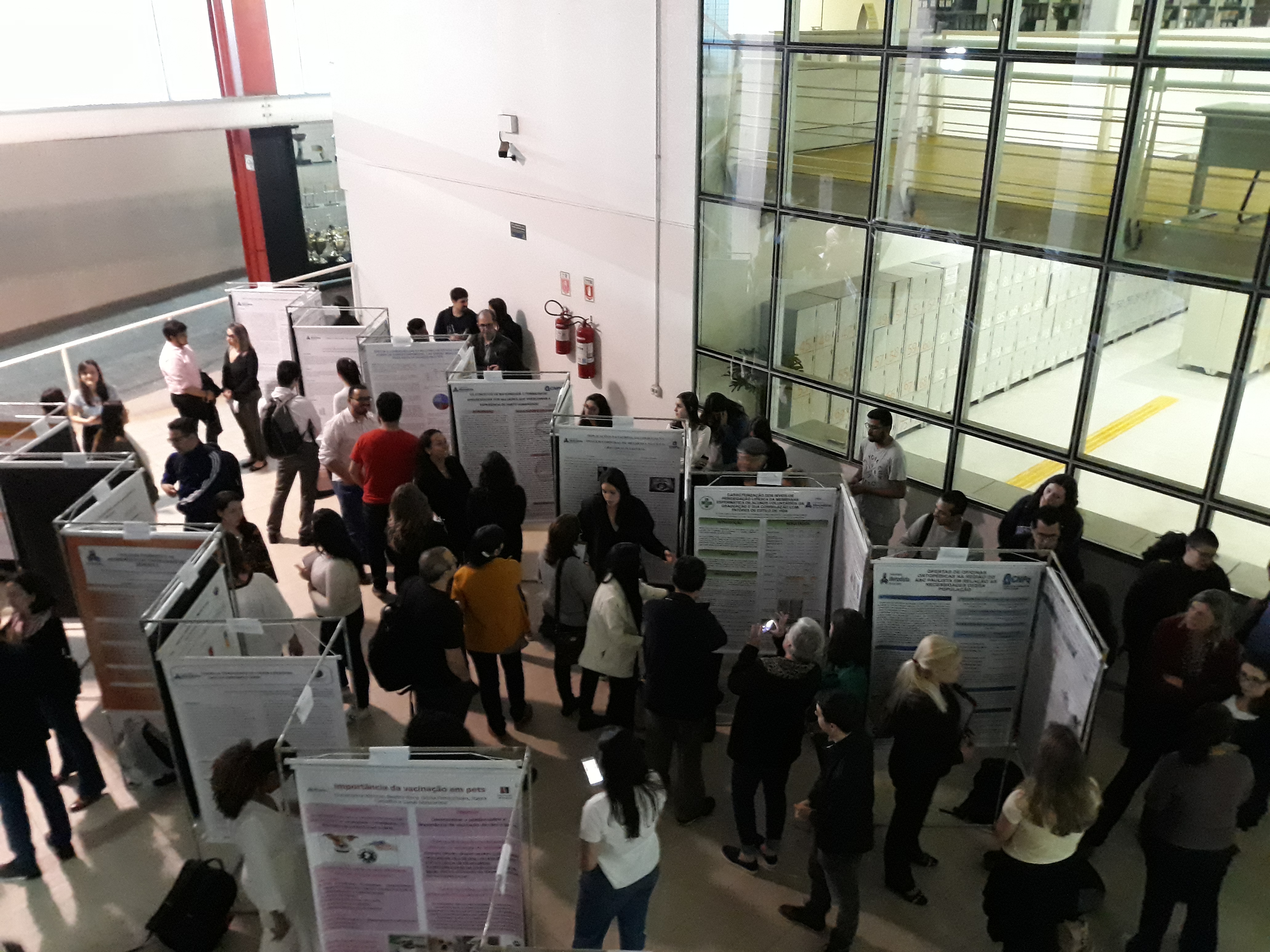Após a palestra, alunos e professores se dirigiram ao hall da Biblioteca Central para apreciar e avaliar os trabalhos dos jovens que participaram do programa de Iniciação Científica. Foram expostas e avaliadas cerca de 40 pesquisas feitas por alunos da graduação da Universidade Metodista de São Paulo, entre as áreas de Psicologia, Odontologia, Medicina Veterinária, Biomedicina, Teologia, Jornalismo, Fisioterapia, Engenharia Ambiental e Pedagogia - PARFOR (Programa Nacional de Formação de Professores de Educação Básica).