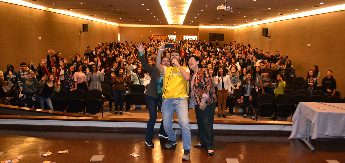 A diretora de Pós-graduação e Pesquisa, professora Adriana Barroso de Azevedo, também deu uma palavra, explicando aos estudantes a estrutura da Metodista, como os campi, espaços acadêmicos de apoio aos estudos como biblioteca e laboratórios, além da continuidade de qualificação após a graduação.