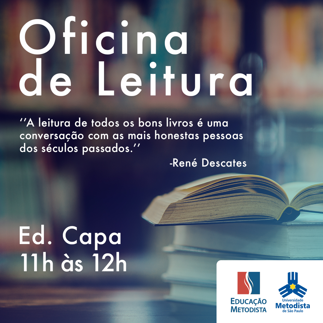 Já estão em andamento as Oficinas de Leitura ministradas por alunos de pós-graduação. As oficinas são abertas a alunos de todos os cursos e gratuitas, com horas complementares e certificado de conclusão.