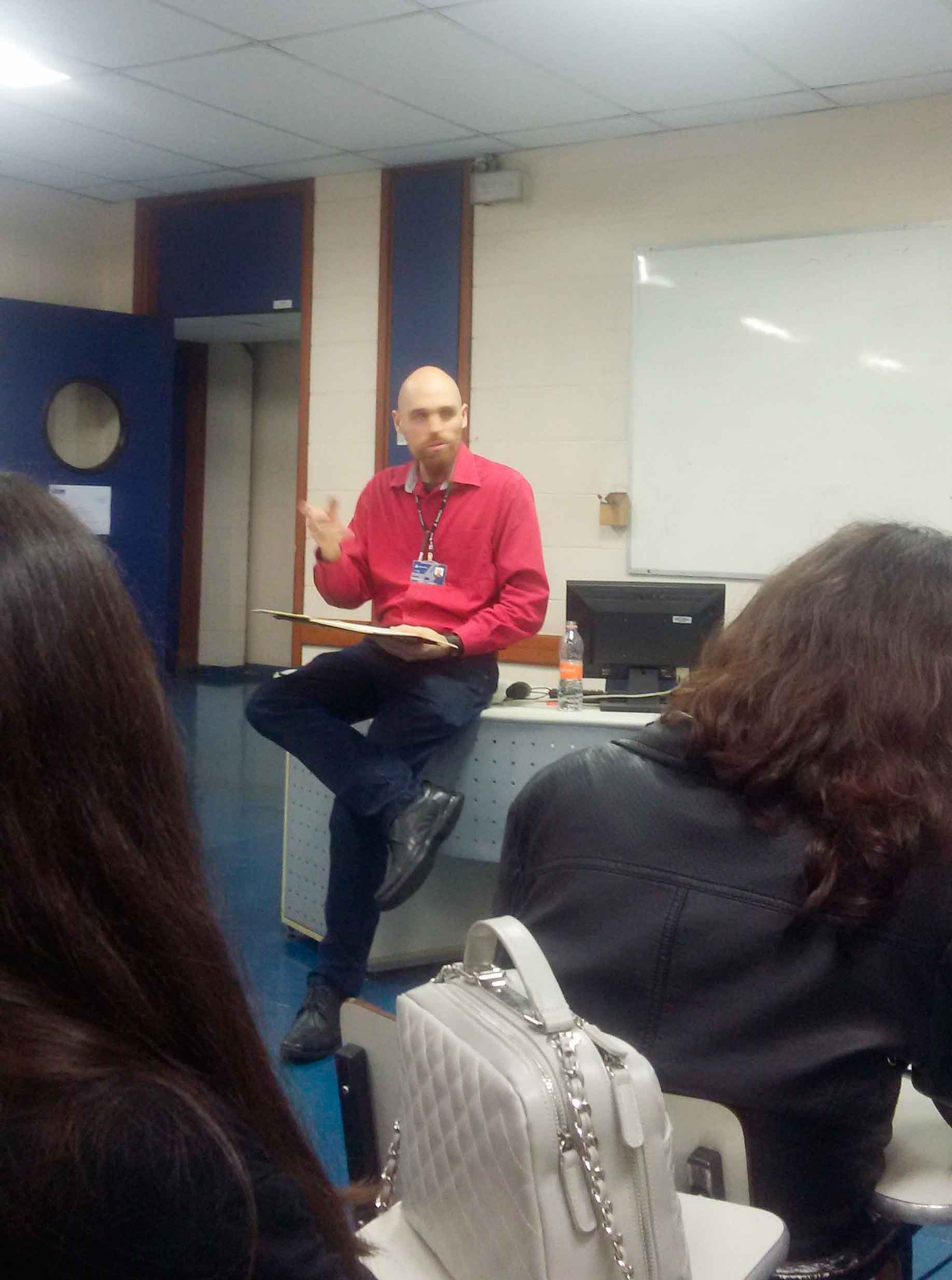 Professor Vitor Chaves de Souza durante a fala na palestra
