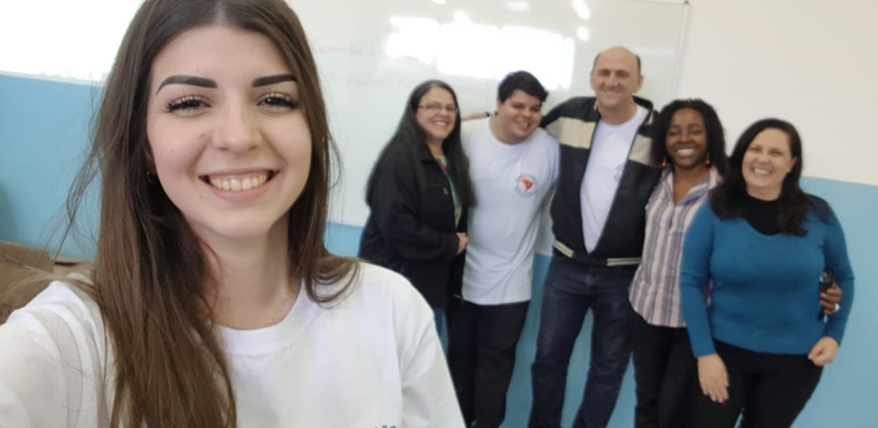 Alunos do Instituto Projeto Rondon com participantes da oficina em Diadema