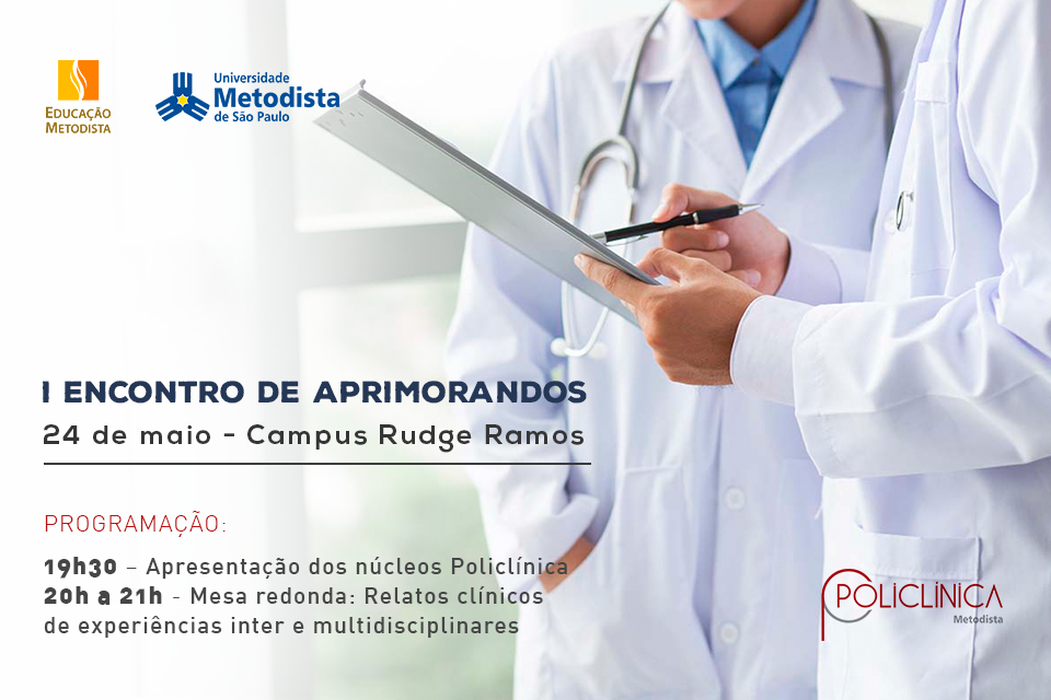 No dia 24 de maio a Policlínica da Escola de Ciências Médicas e da Saúde da Universidade Metodista de São Paulo realizará o I Encontro de Aprimorandos – Policlínica, na sala 208 do Edifício Épsilon do campus Rudge Ramos (Rua Alfeu Tavares, 149, Rudge Ramos, São Bernardo do Campo).