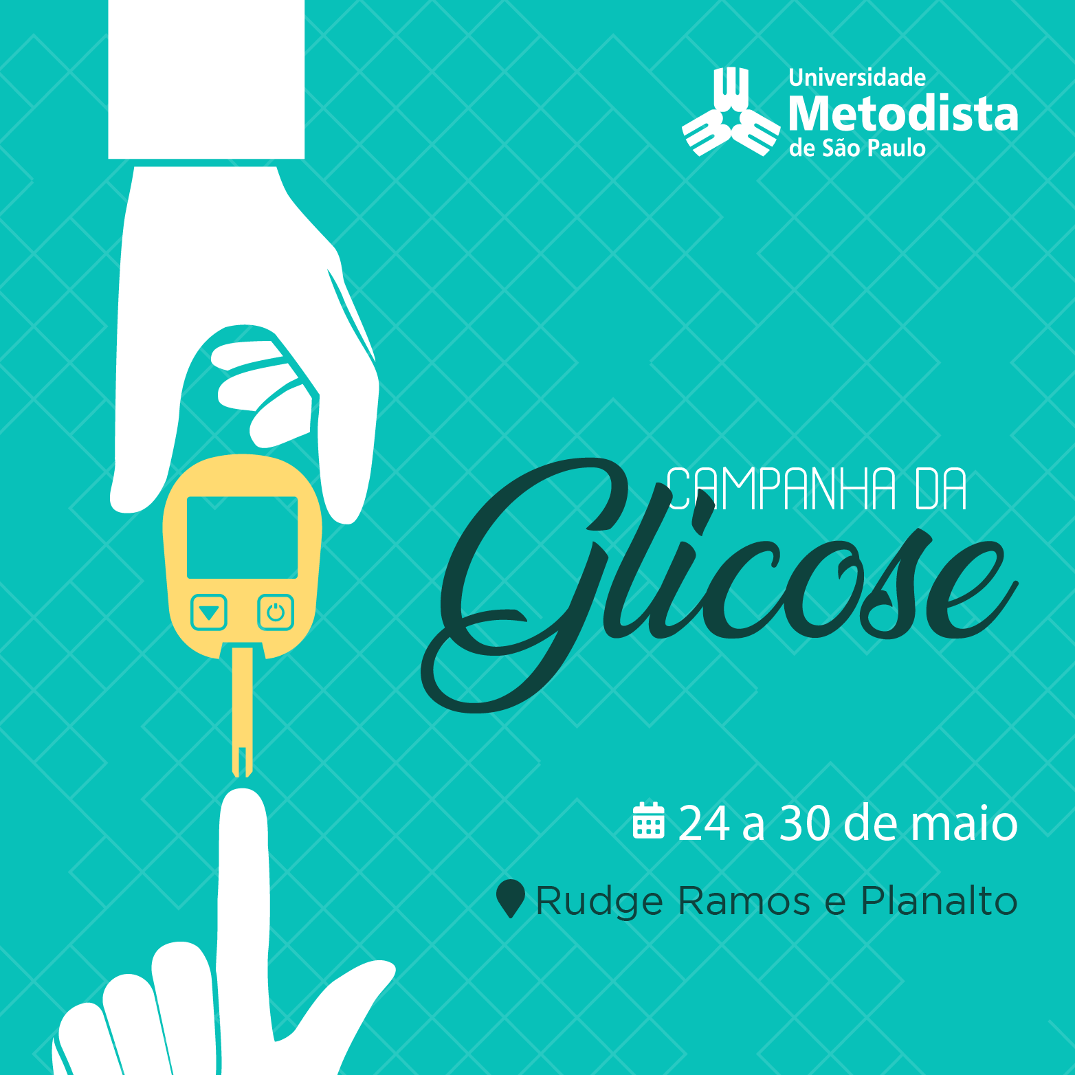 Como forma de combate aos riscos da glicemia alta à saúde, o Núcleo de Análises Clínicas (NAC) da Policlínica da Universidade Metodista de São Paulo realizará exames gratuitos de glicemia de 24 a 30 de maio.