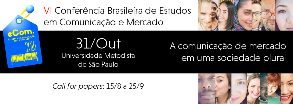 A Cátedra Unesco e o grupo de pesquisa ECOM – Estudos de Comunicação e Mercado da Universidade Metodista de São Paulo promovem, no dia 31 de outubro de 2016, a VI Conferência Brasileira de Estudos em Comunicação e Mercado.