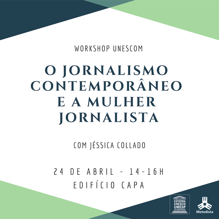 A Cátedra Unesco/Umesp da Universidade Metodista de São Paulo retorna sua agenda de Workshops Unescom a partir do dia 24 de abril de 2019, com o workshop "O jornalismo contemporâneo e a mulher jornalista".