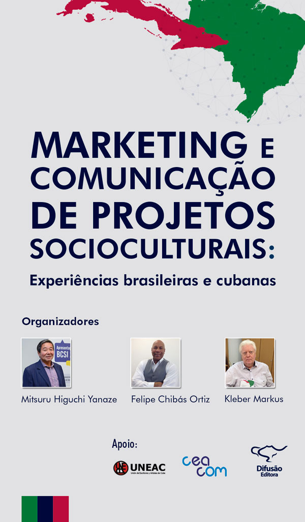 A obra “Marketing e Comunicação de Projetos Socioculturais: experiências brasileiras e cubanas”, organizada pelos professores Mitsuru Higuchi Yanaze (USP), Kleber Markus (UMESP) e Felipe Chibás Ortiz (UNEAC - Unión de Escritores y Artistas de Cuba), será lançada pela editora Difusão no dia 1° de junho, nas dependências das Faculdades Drummond às 20h.