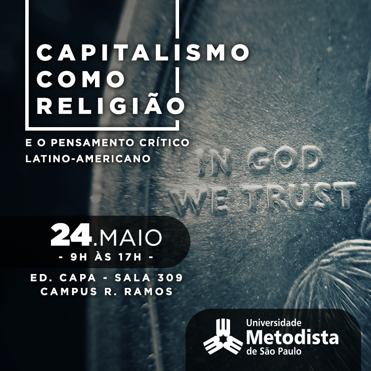 O Programa de Pós-graduação em Ciências da Religião promove, no dia 24 de maio de 2019, das 9h às 17h, o III Seminário Interdisciplinar Capitalismo como Religião e o Pensamento Crítico Latino-americano, que terá como tema “Capitalismo como religião: a ciência econômico-social como teologia profana”. O encontro será realizado na sala 309 do edifício Capa.