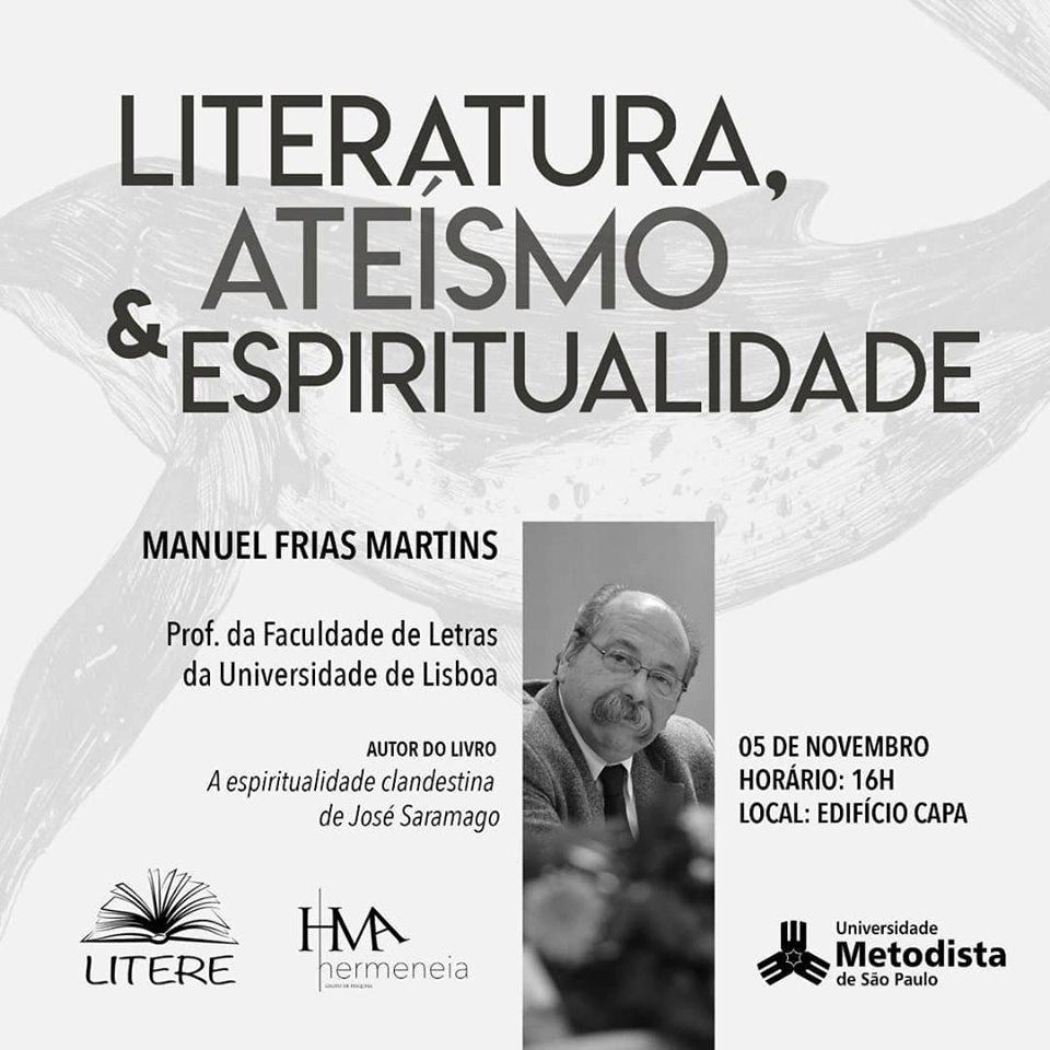 O Programa de Pós-graduação em Ciências da Religião promove o “Diálogo sobre Literatura, Ateísmo e Espiritualidade”, que contará com o professor da Faculdade de Letras da Universidade de Lisboa Manuel Frias Martins como palestrante. O evento será no dia 05 de novembro e é voltado aos alunos e docentes do programa.