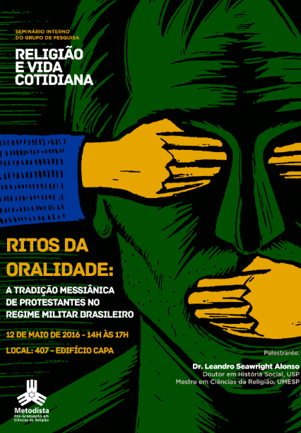 O grupo de pesquisa "Religião e vida cotidiana" promove no dia 12 de maio de 2016, às 14h, o seminário interno "Ritos da oralidade: tradição messiânica de protestantes no regime militar brasileiro".