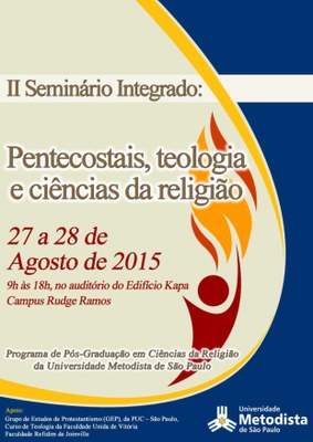 O Programa de Pós-Graduação em Ciências da Religião da Universidade Metodista de São Paulo, com apoio do Grupo de Estudos de Protestantismo e Pentecostalismo da Pontifícia Universidade Católica – São Paulo e do Curso de Teologia da Faculdade Unida de Vitória e da Faculdade Refidim de Joinville, promove, nos dias 27 e 28 de agosto, o II Seminário Integrado: Pentecostais, Teologia e Ciências da Religião.