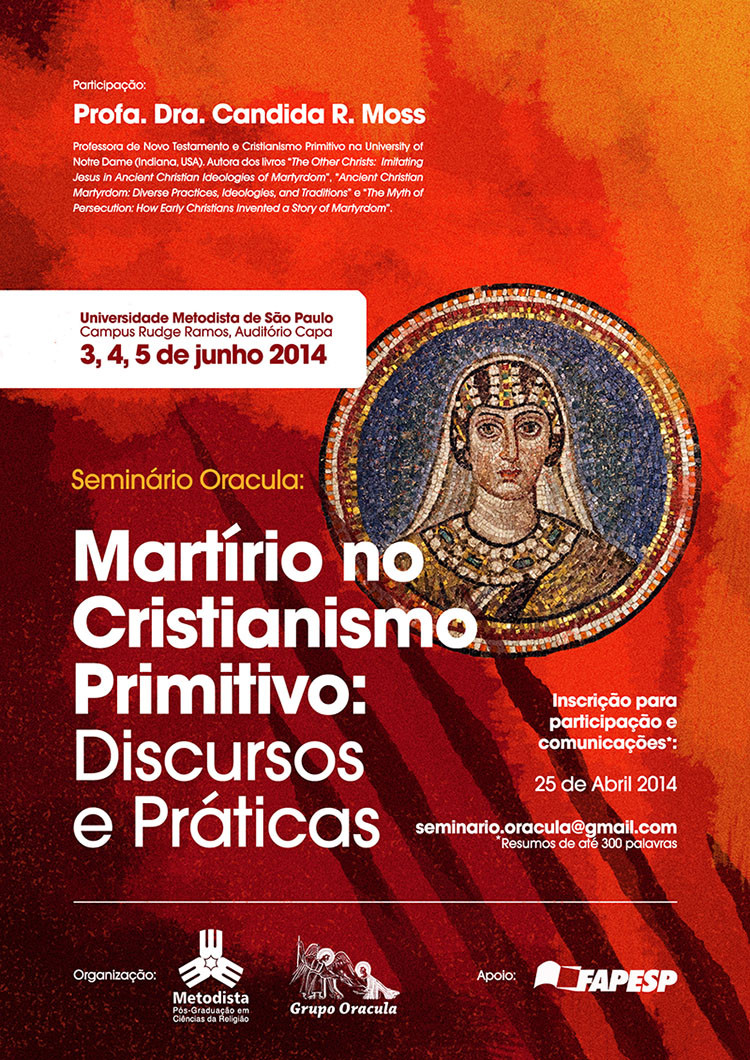 O Programa de Pós-Graduação em Ciências da Religião, com apoio do Grupo Oracula, promove nos dias 03,04 e 05 de junho de 2014, o Seminário Oracula com o tema “Martírio no Cristianismo Primitivo: Discursos e Práticas”.