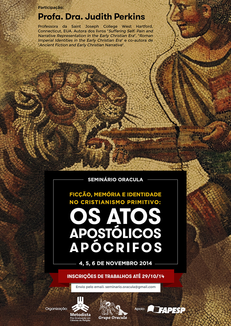 O Programa de Pós-graduação em Ciências da Religião da Universidade Metodista de São Paulo, por meio do Grupo Oracula, promove, de 04 a 06 de novembro, mais uma edição do Seminário Oracula, com o tema “Ficção, memória e identidade no Cristianismo Primitivo: Os Atos Apostólicos Apócrifos”.