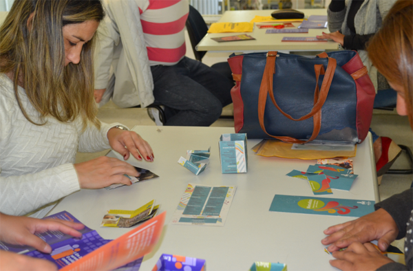Dois artesanatos estão sendo ensinados: caixinhas feitas com papel reaproveitado e chaveiros. Vanusa Santos Guerra espera seu filho que presta vestibular para Psicologia. “O café está ótimo, não conhecia nada da Metodista, estou conhecendo agora”, diz.