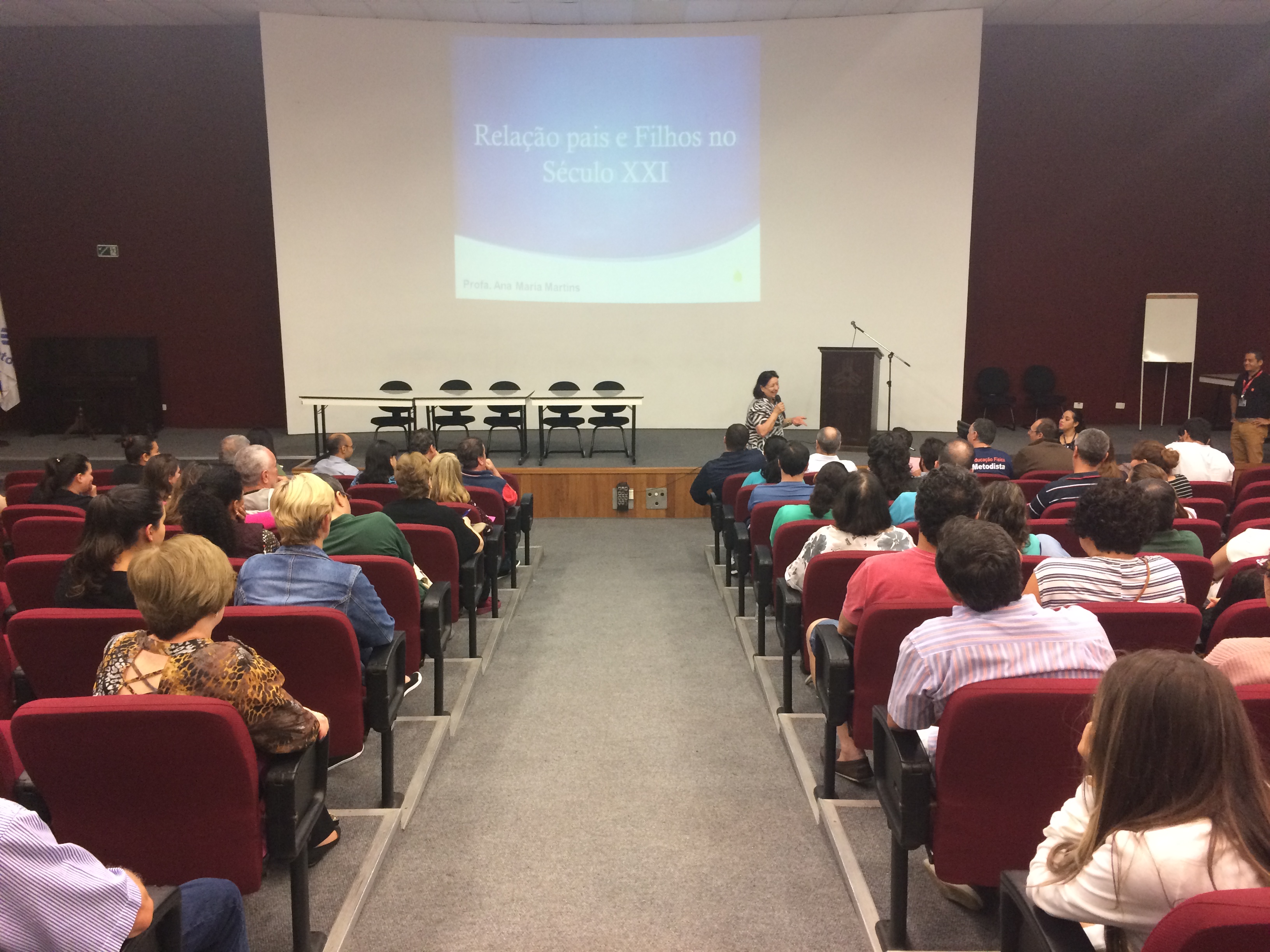 Enquanto esperam os vestibulandos terminarem a prova do processo seletivo da Universidade Metodista de São Paulo, familiares e acompanhantes assistem a palestras ministradas por professores e funcionários da Metodista. A professora Ana Maria Martins, coordenadora do curso de Secretariado, fala sobre a "Relação pais e filhos no século XXI", um bate-papo fundamental para que familiares compreendam melhor as demandas e transformações da juventude, sobretudo em momentos de transição como o ingresso na vida universitária.
