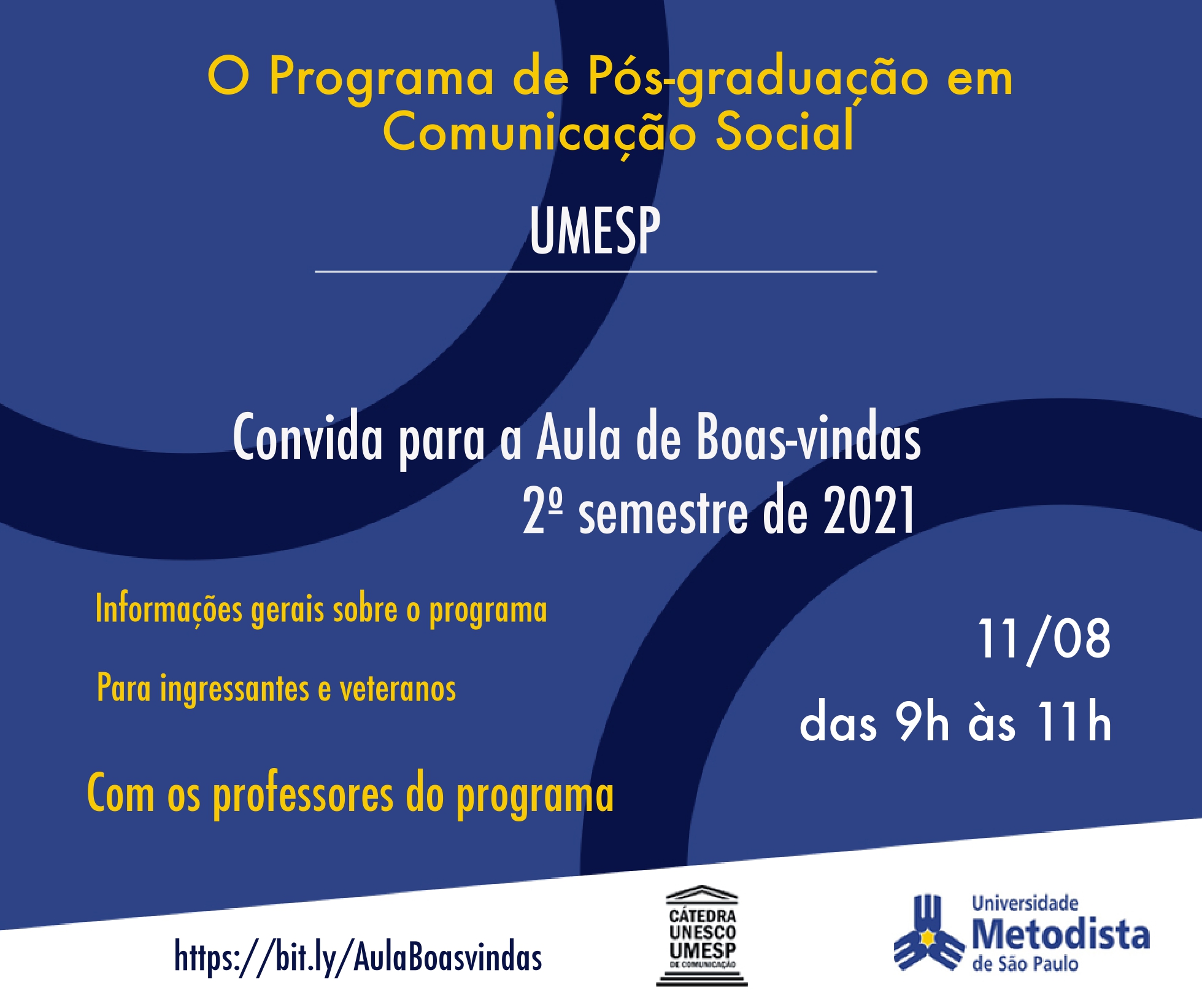 O Programa de Pós-graduação em Comunicação Social/UMESP, Convida para a Aula de Boas-vindas 2º semestre de 2021.