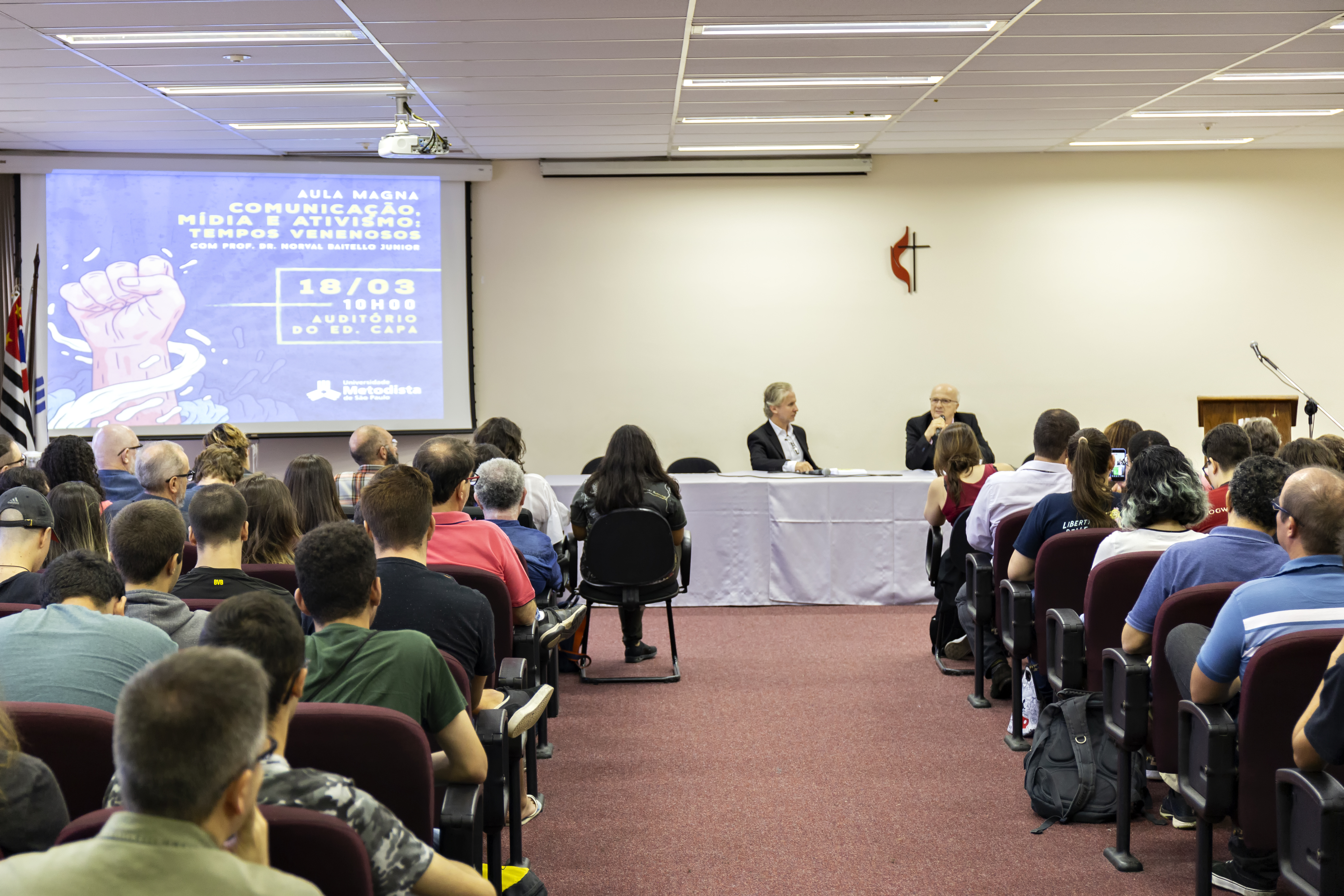 Norval Baitello fala sobre comunicação, mídia e ativismos em aula magna do PPGCOM. Foto: Wagner Ribeiro