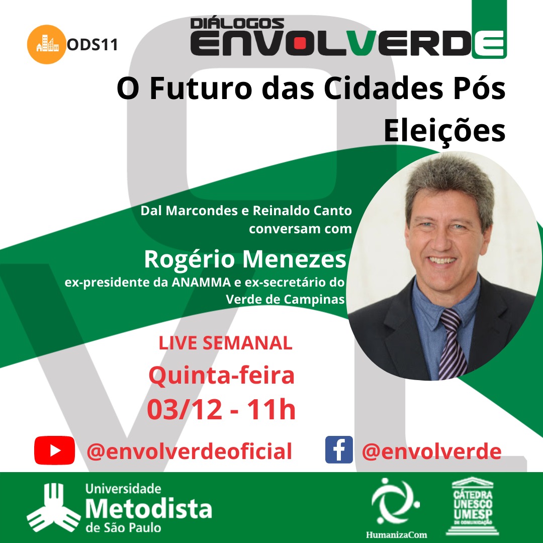 O Diálogos ENVOLVERDE recebeu, no último dia 3 de dezembro, Rogério Menezes, ex-presidente da ANAMMA - Associação Nacional dos Órgãos Municipais de Meio Ambiente e ex-secretário do Verde de Campinas.