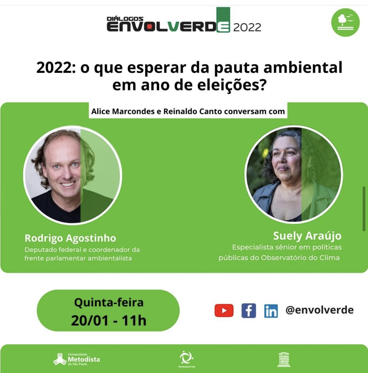 Na quinta-feira dia 20/01, a Envolverde realizou mais uma live semanal, o tema foi “ 2022: O que esperar da pauta ambiental em ano de eleições.