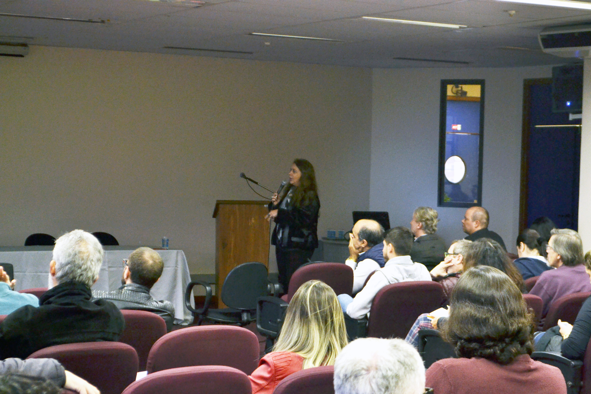 Antes da palestra, a coordenadora de pós-graduação e pesquisa, Adriana Barroso de Azevedo e o coordenador da pós-graduação de comunicação social, Luiz Faria, falaram brevemente sobre a preocupação com o futuro da pesquisa e do país.