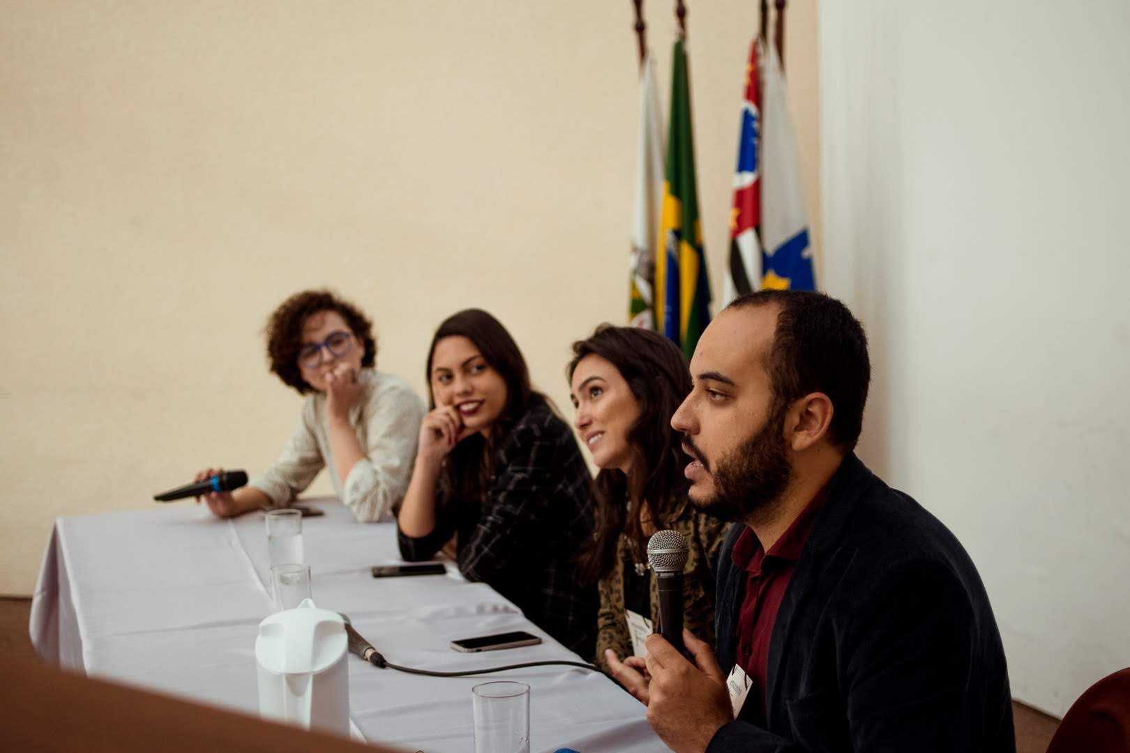 A mesa de abertura do evento teve como temática o Podcast, e estiveram presentes os jornalistas Isabela Medeiros e Gabriela Viana, ambas do Podcast CBN Vozes, e Renan Sukevicius, editor e produtor dos Podcasts da Folha de S. Paulo.