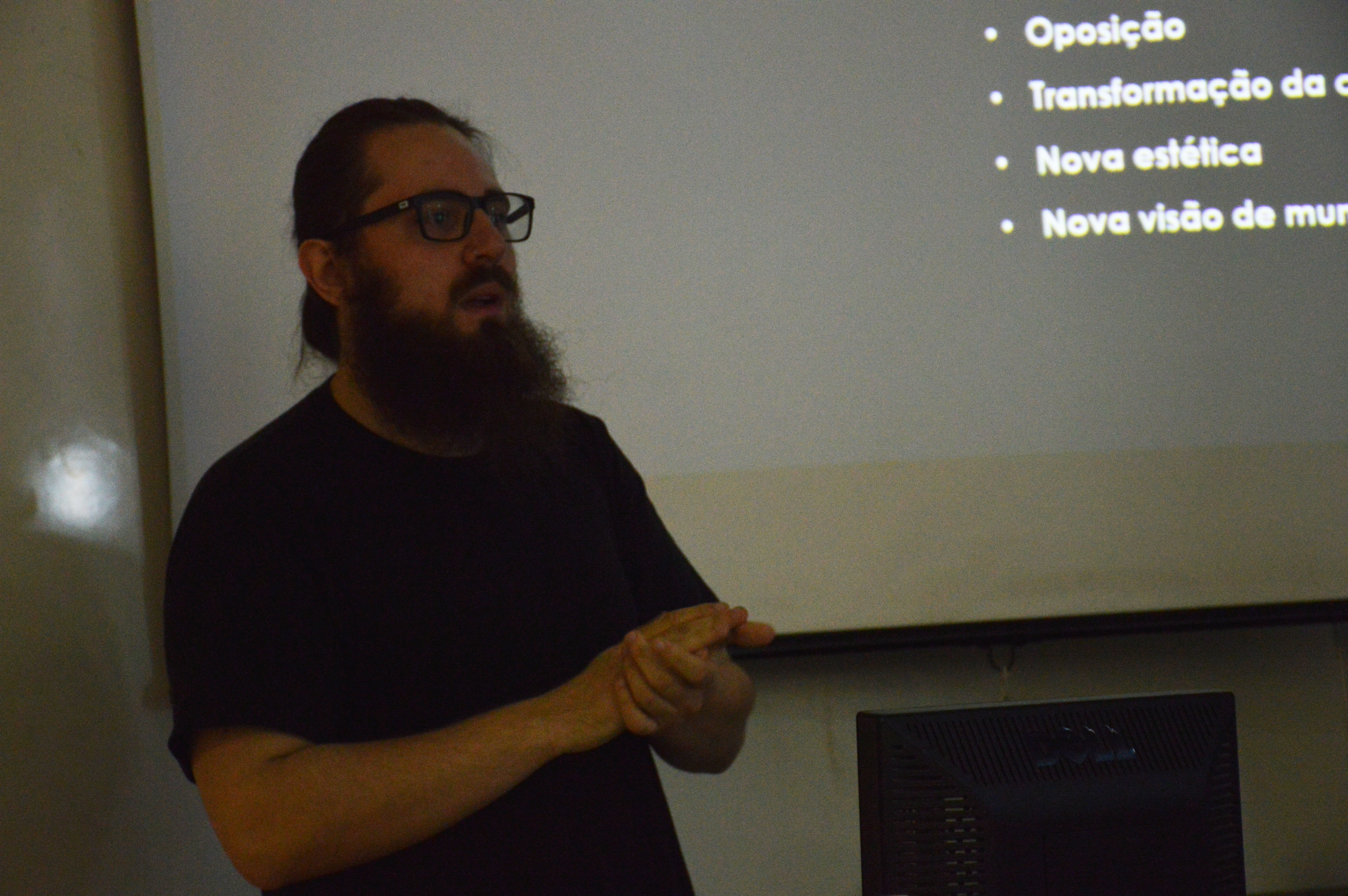 Renan é mestrando em Comunicação Social pela UMESP e sua pesquisa contempla os processos comunicacionais do movimento punk na ditadura militar. Em sua apresentação, ele afirma que “a contracultura é um questionamento de valores, aos padrões atuais da sociedade, aos padrões dos costumes, o comportamento passa a ser transgressor da norma hegemônica e das regras de comportamento”. Esse movimento, portanto, traz uma nova estética para a sociedade por se tratar justamente de uma forma de compreender, interpretar e criticar diversos aspectos já enraizados nas pessoas, sejam eles políticos, sociais, culturais ou qualquer outro.