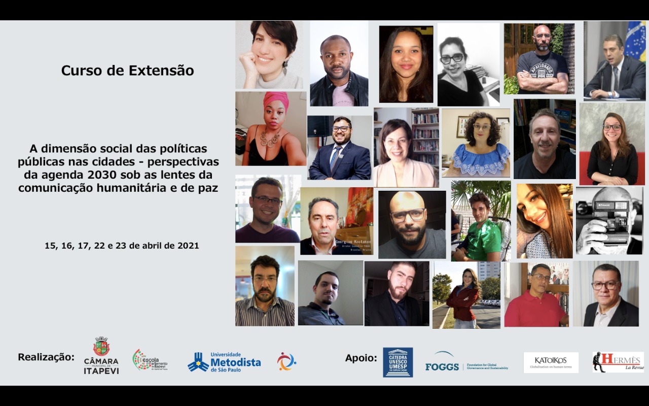 Entre os dias 15 e 23 de abril, cerca de 250 estudantes, pesquisadores e comunicadores participaram do curso de extensão universitário “Dimensão social das políticas públicas nas cidades: perspectivas da Agenda 2030 sob as lentes da comunicação humanitária e de paz”, organizado pela Escola do Parlamento Dr. Osmar de Souza da Câmara Municipal de Itapevi (SP).