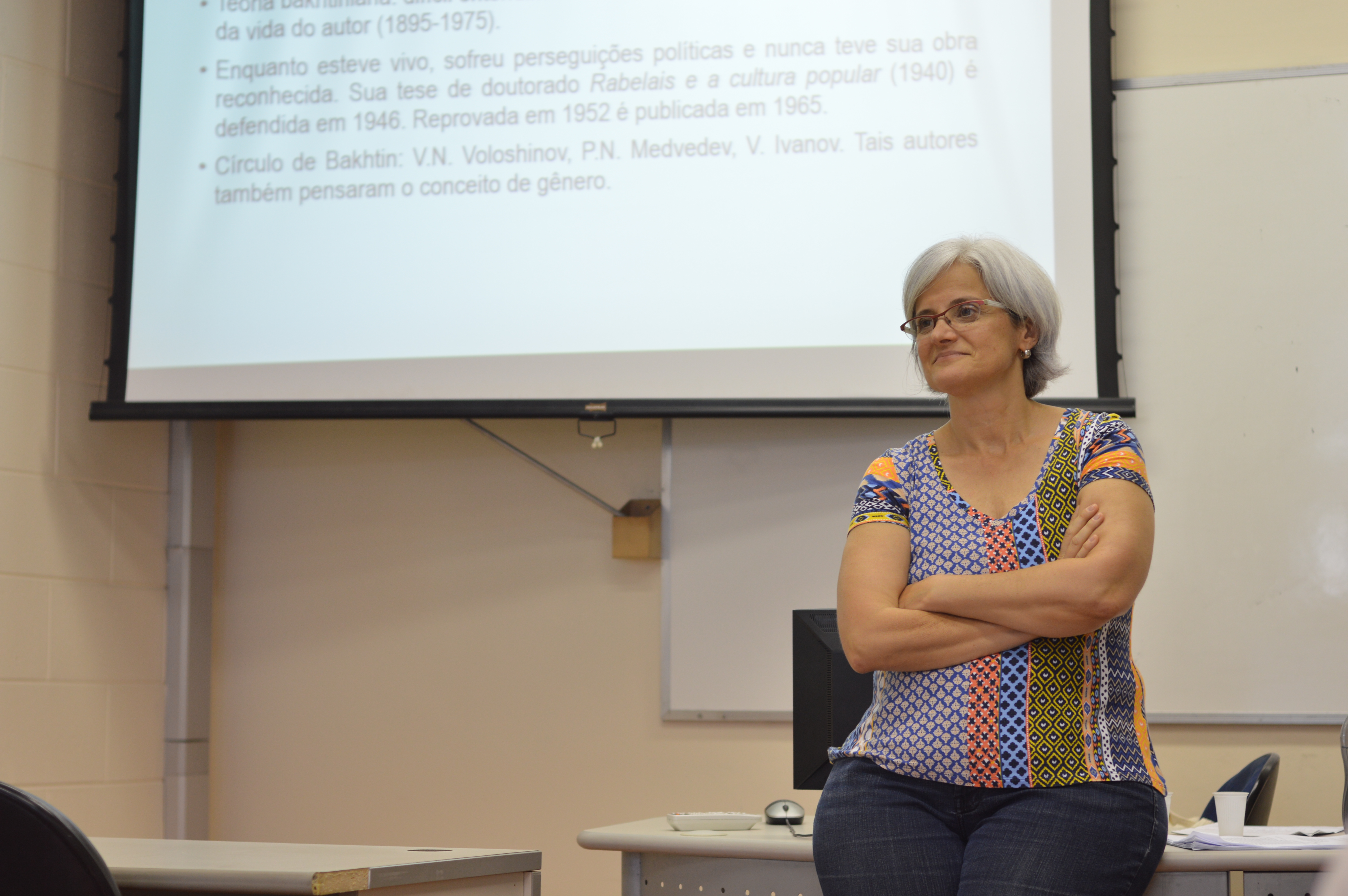 Dentro da sua abordagem, a professora destacou algumas características de um gênero específico: a sátira menipeia, que contém a presença do elemento cômico, representação do inferno, do fantástico experimental, a presença da loucura entre outros elementos.