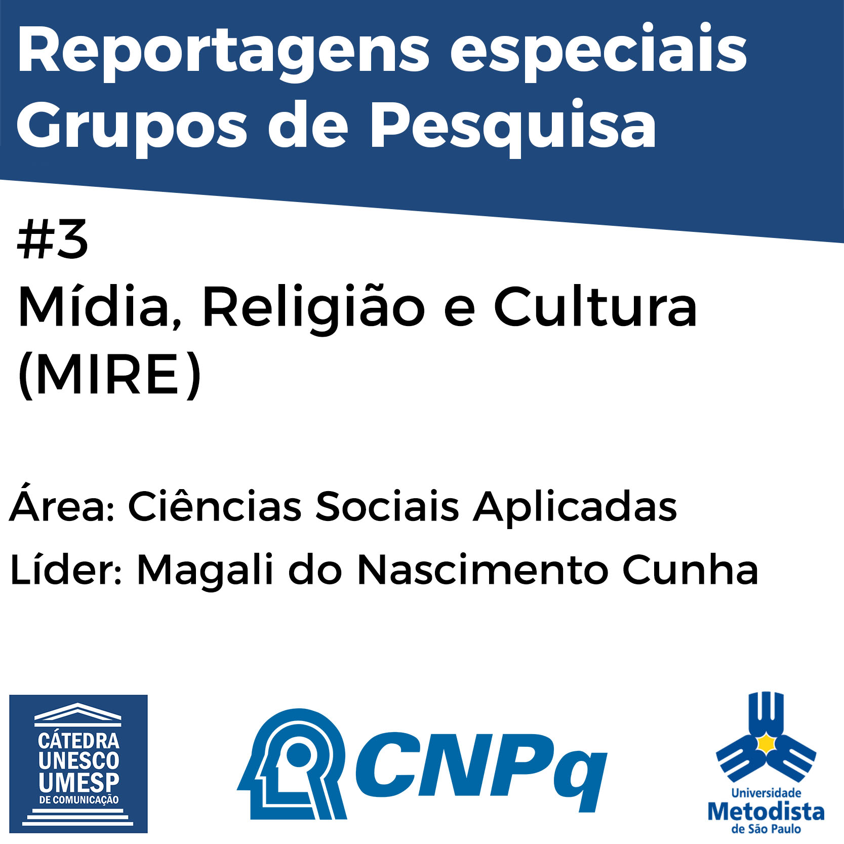 O terceiro Grupo a ser explorado nessa série é o Mídia, Religião e Cultura (MIRE), que teve início em 2014 e é liderado atualmente pela professora Magali do Nascimento Cunha, do Programa de Pós-Graduação em Comunicação Social da UMESP. Seu objetivo é buscar com a perspectiva da interdisciplinaridade, compreender a presença da religião e do "religioso" nos processos comunicacionais midiáticos na inter-relação com as práticas culturais contemporâneas no Brasil.