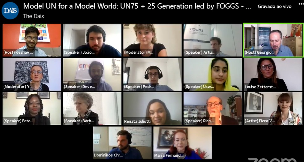Nesta segunda-feira (21), um evento com representantes da ONU (Organização das Nações Unidas) e com estudantes ao redor do mundo foi realizado com o intuito de discutir o futuro da instituição. O encontro virtual foi promovido pela fundação belga “Fundação para a Governança Global e Sustentabilidade” (FOGGS) e contou com a presença de um jovem brasileiro da comunidade de Heliópolis.
