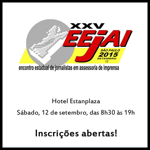 Estarão reunidas para 25º edição do Encontro Estadual de Jornalistas em Assessoria de Imprensa (EEJAI) com o tema "Assessoria de Imprensa, um segmento sempre vital para a comunicação na era digital". O evento faz parte das comemorações dos 40 anos da criação da Comissão Permanente de Assessoria do Sindicato dos Jornalistas e dos 30 anos de redação do primeiro manual de assessoria de imprensa no País e traz autoridades na área, entre pesquisadores, lideranças e nomes de destaque. Para aqueles que pesquisam comunicação mercadológica, sobretudo com foco em assessoria de imprensa, o evento pode ser uma oportunidade.