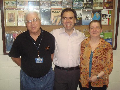 Da esq. para dir. Prof. Marques de Melo, Prof. Valério Cruz Brittos e Profa. Maria Cristina Gobbi reunidos na Cátedra Unesco em 2008. Foto: Redação JBCC