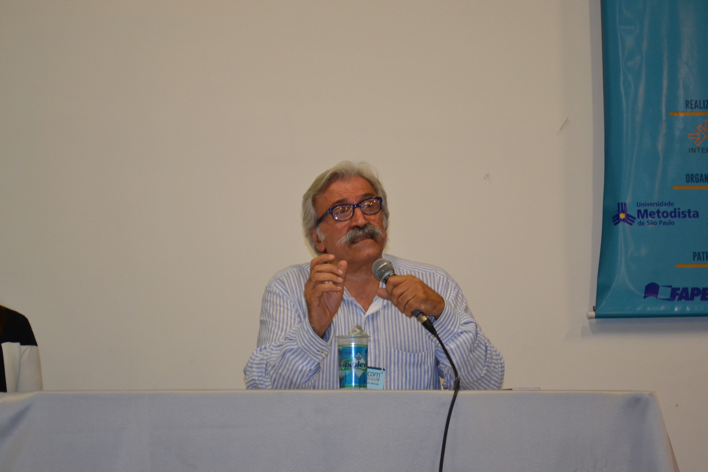 A mesa também foi composta pela professora Margarida Kunsch (ECA/ USP e SOCICOM), Ênio Vergeiro (APP), Luís Alberto de Farias (Abracorp), Valci Regina Zuculoto (FENAJ e do Sindicato de SC – UFSC) e José Marques de Melo, que não pode estar presente mas teve suas considerações sobre o tema lidas na apresentação.